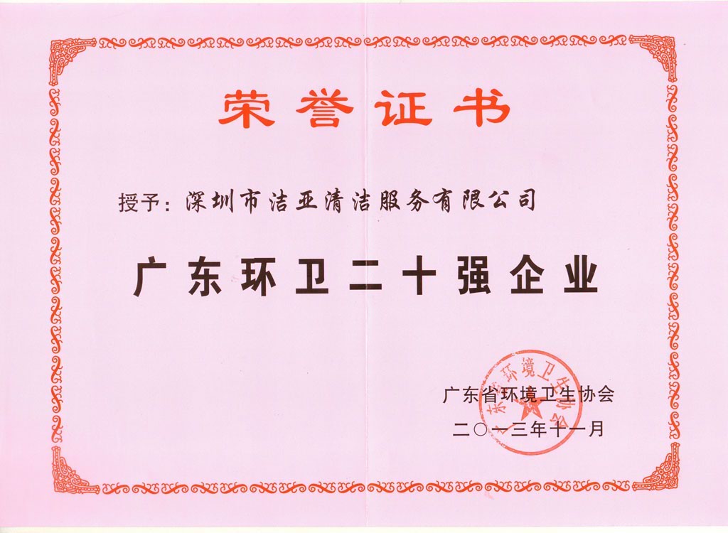 大满贯公司先后获得中国城市环境卫生协会副主任委员单位、中国清洁服务行业百强企业、广东省服务业百强企业、广东省环卫行业先进单位、广东省全国名牌——最具成长性企业、广东省环卫20强、广东省诚信示范企业、广东省守合同重信用企业、深圳市500强企业、深圳市质量百强企业、深圳市行业领袖百强企业、深圳市十佳优质服务企业、浙江省清洗保洁行业优秀企业等150多项荣誉称号。