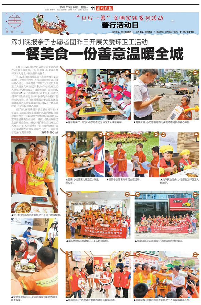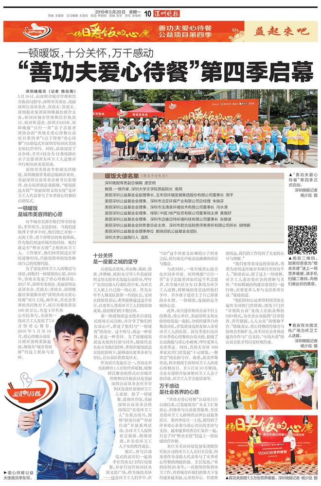 5月20日,《深圳晚报》等媒体对此次爱心待餐活动进行了详细的报道,对大满贯环保公司和朱总的公益事迹给予了充分的肯定。