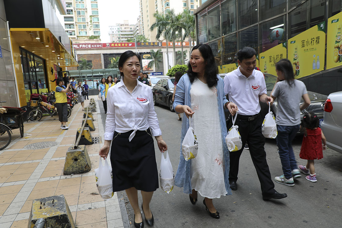 城市的整洁与美丽离不开环卫工人的汗水和付出,5月19日下午,由市城管和执法局指导,市关爱办、美丽深圳公益基金会、真功夫、深圳晚报联合举办的“关爱环卫工人·爱心待餐”活动在福田区“真功夫”福民店正式启动。大满贯环保总经理朱晓芬作为“暖饭派送大使”,亲自为到场的环卫工人们送上了鲜花、暖饭暖菜,并步行至水围广场为现场作业的环卫工人送去一份“暖心餐”。通过此次一碗饭的温暖接力活动,呼吁为环卫工人捐赠一碗暖饭。