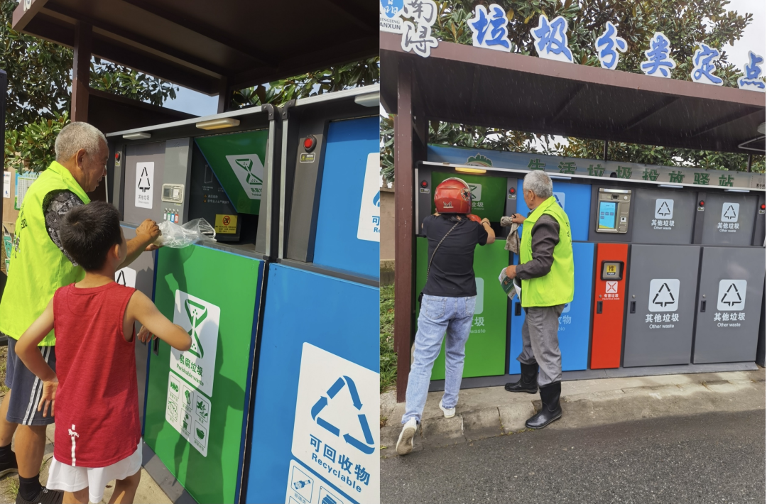 南浔区双林镇大满贯环保的垃圾分类督导员不辞劳苦地做好垃圾的分拣和监督,向居民宣传垃圾分类的知识。长假7天,大满贯环保垃圾分类督导员每天依旧会准时值守在垃圾分类集中投放点,检查居民送来的垃圾是否按要求分好类,并引导居民正确投放至不同类别的垃圾桶里。