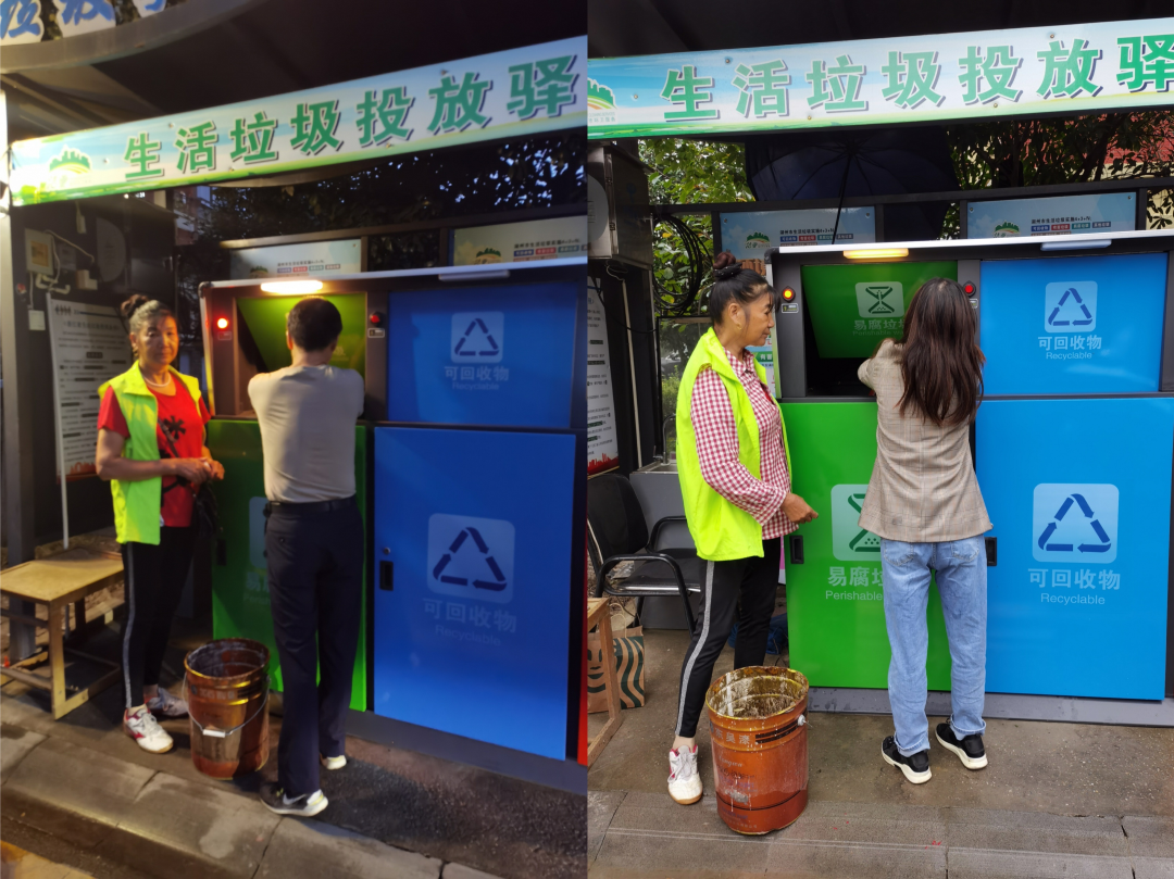 “督导员们都很辛苦的,别人都放假了,但是垃圾不放假,他们就不放假。这次假期时间长,如果不出门旅游,每户会产生更多的垃圾,他们可能会比平时更累一点,并增加中午段投放时间开启假日模式。”管理员们这样说,他们见证着每一位督导员的辛勤劳作。因此,在管理员的带领下督导员们更加积极投身到分类工作中,将小区内的分类站点打扫干净,并将分类垃圾桶一一做好清洁,让我们的祖国母亲干干净净“过生日”。以榜样的力量带动身边更多的居民养成自觉分类、精准投放的好习惯,并逐步让居民成为垃圾分类投放环节的主角。